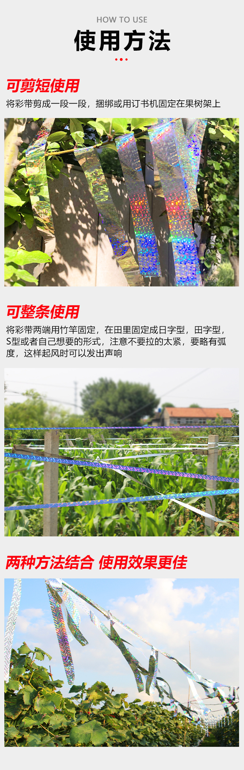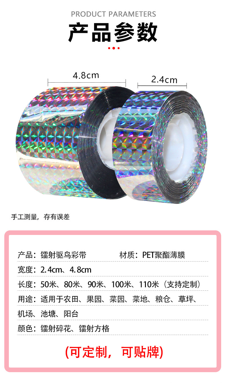 24MM 50M雙面防鳥閃光家用高亮度果樹彩條鐳射驅(qū)鳥帶彩帶